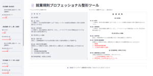 左側のナビゲーションウィンドウに「章・条・項・号」の階層が自動生成されます。これにより、数十ページに及ぶ規程の検索性が劇的に向上します。